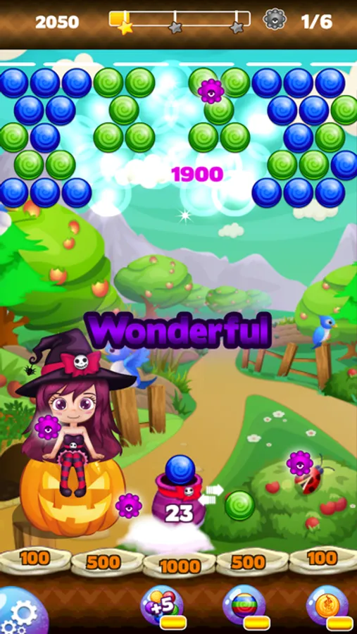 You are on the way to Halloween village, and smashing bubbles of same color!