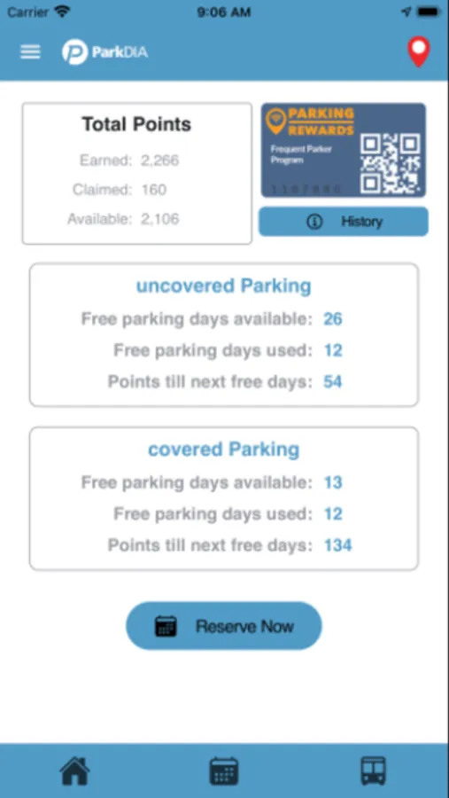 The closest parking lot outside of DIA terminal, ParkDIA offers the fastest door-to-door service with continuous shuttles every 10 minutes - so you’ll be on your way in no time. Use the ParkDIA app to easily track shuttles, reserve and pay all with your smart phone - no lost tickets! Amenities include electric vehicle charging stations, water bottles on all shuttles and charging stations on our shuttles to keep your mobile devices running. Get 180 rewards points (worth $18 of free parking) when you sign up for an account as a ParkDIA Passport Club Member. The app also lets you record your space, review current and past reservations and get exclusive access to special offers and promotions! Come experience DIA’s best and least expensive parking!