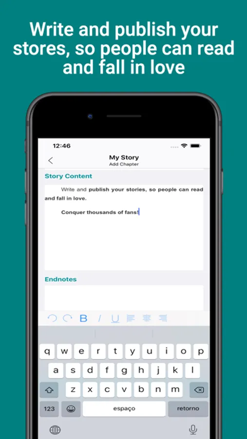 Write and publish your stories, so people can read them and fall in love with them. Conquer thousands of fans!