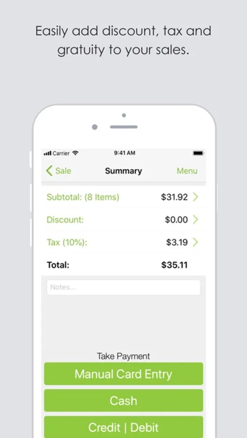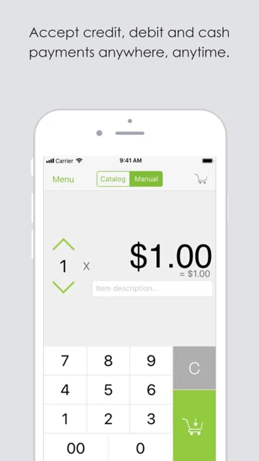 Note: If you need a card reader to accept cards, contact your sales representative or account manager.