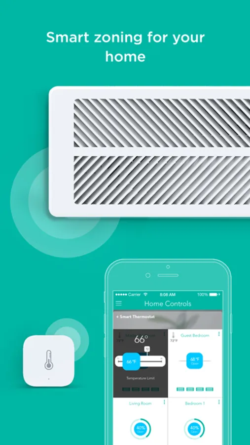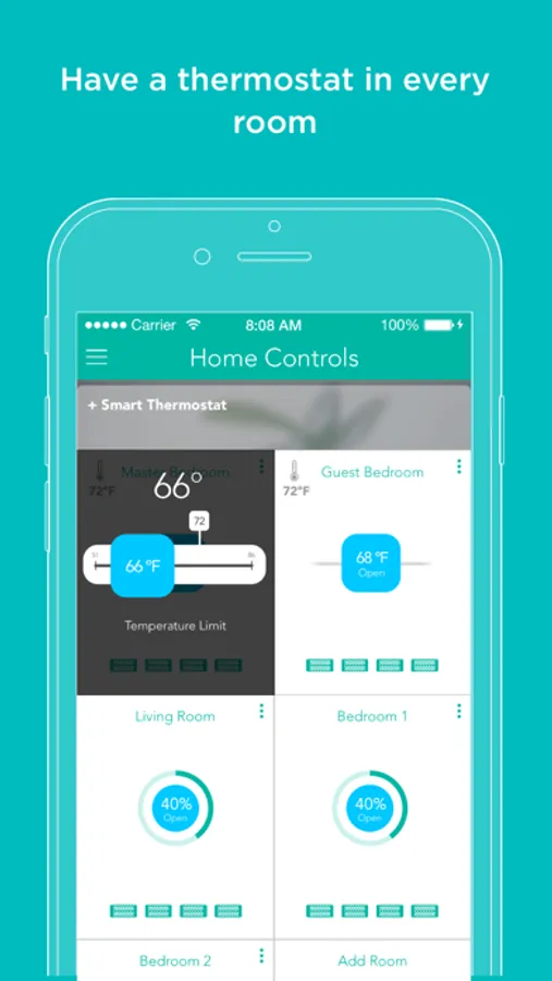 Automatically control temperature and airflow with Smart Vents and Temp Sensors in rooms that are too hot, too cold, or not in use. Set schedules, set room temperatures, and control compatible thermostats.
