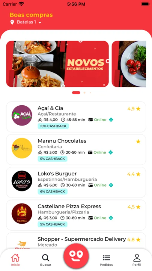 E você ainda aproveita o nosso Cashback, onde você recebe parte do seu dinheiro de volta para novas compras ao pedir nos estabelecimentos participantes.