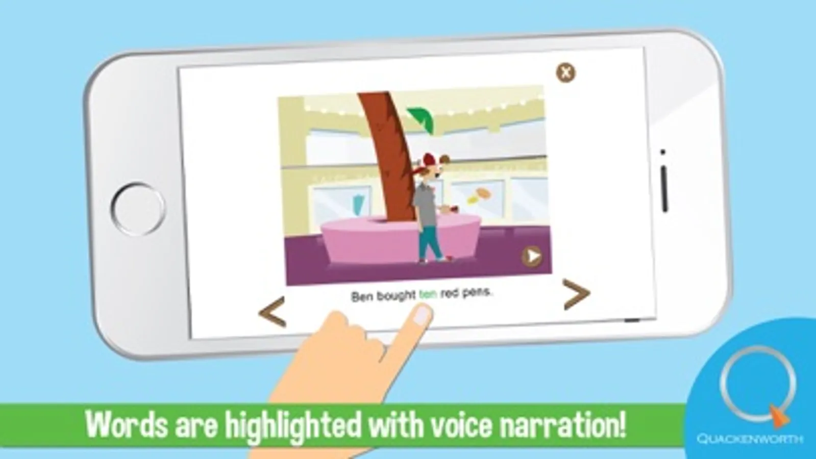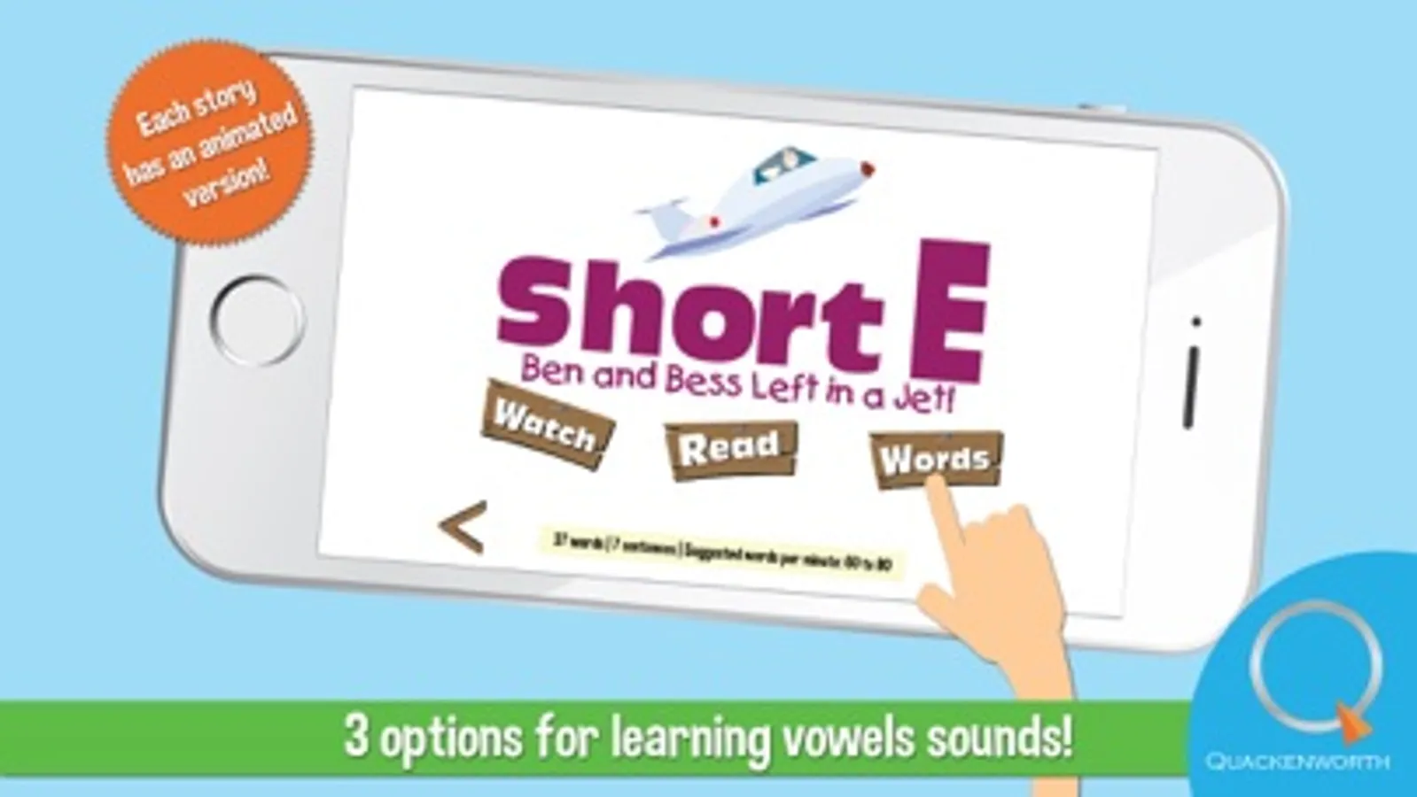 The app contains simple stories based on the long and short vowel sounds as well as sight words. This is an ideal app for children who are learning to read or who need to improve phonemic awareness (phonics), fluency (reading speed), and the recognition of letter sounds and common sight words.