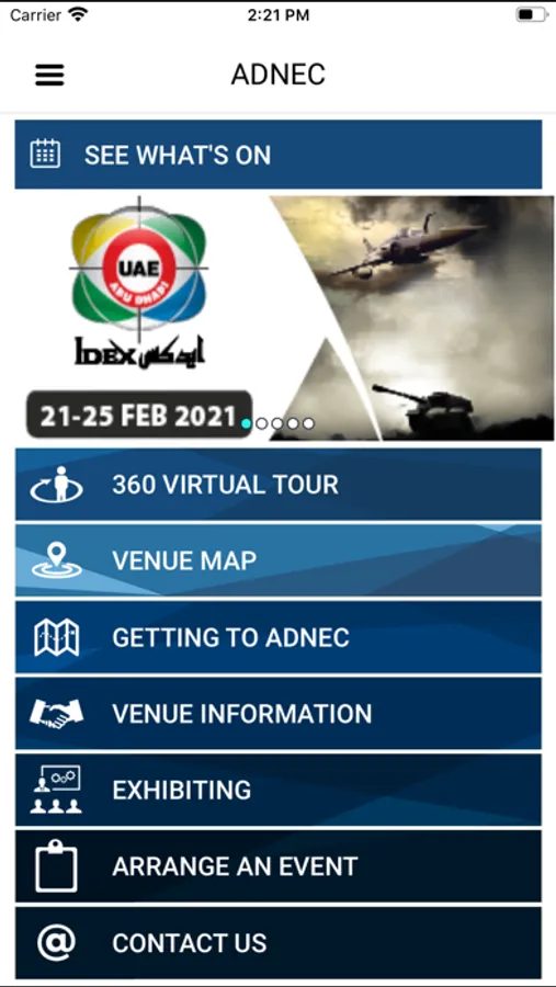 Welcome to the Abu Dhabi National Exhibitions Center (ADNEC) iPhone application which is designed to offer its clients and users the functions and facilities to interact with the officials for the events and exhibition venues, explore ADNEC facilities and services, learn more on the upcoming events, yet make bookings for hotels, restaurants and other services. The ADNEC iPhone application keeps the user updated through “What’s On” function, yet provide the notification services for the most important events or changes to schedules.