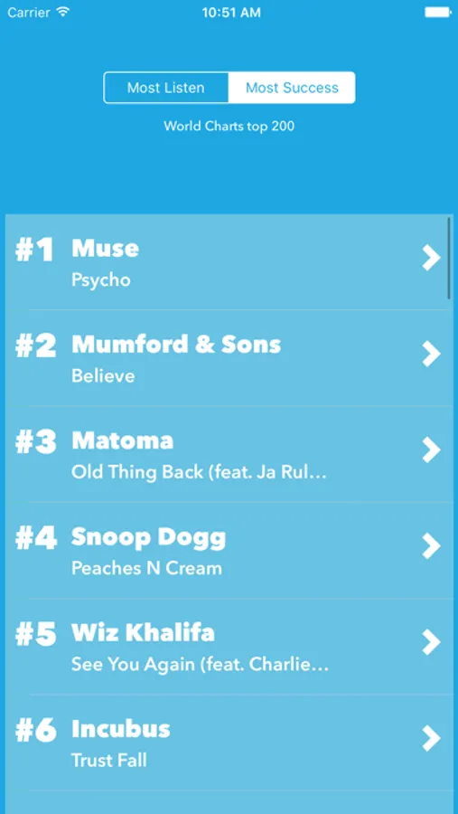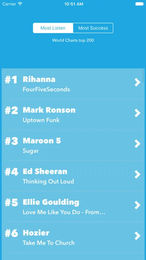 Find your favorite songs and check the chart rating.
