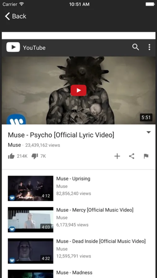 Browse through your favorite songs and listen to them right in the app!