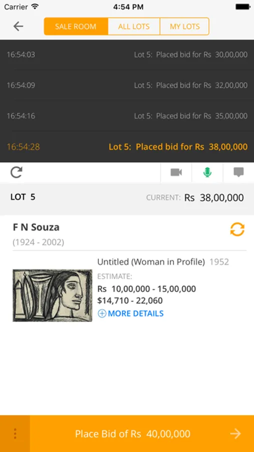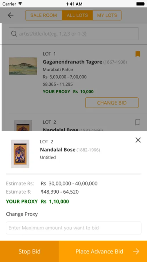 * Add lots of interest to "My Lots" to get reminders when they come up for bidding in a live auction