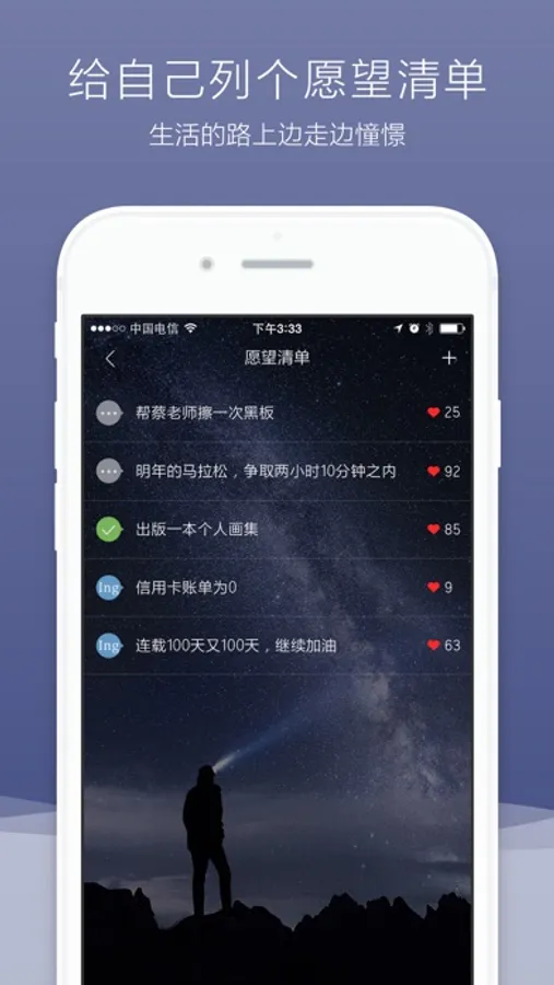轻想,是轻量级记录工具,记录您实现目标的历程,印刻珍贵回忆,连载生活与未来。