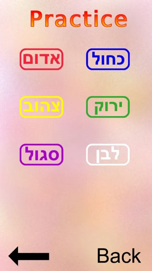 Fun and easy way to learn the Hebrew colors! Fly the ship in a rain of colors while changing speed and size. Collect the correct colors while shooting the wrong ones. When you collect the right colors you will hear its Hebrew name. Start a new game, resume a game, or practice each letter individually.