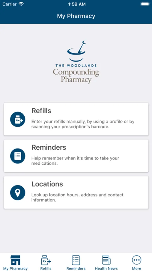 The Woodlands Compounding Rx app allows you and your family to securely communicate with your local pharmacy. Refill your prescriptions with one click, get refill reminders, get discounts at your local pharmacy, get savings on brand drugs and access Pharmacist written pages that help you understand your condition or medications.