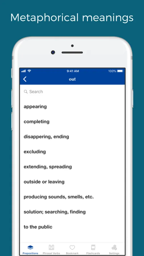 In addition to literal meaning, all prepositions have metaphorical meanings. For example, when we say the plane has taken off. The preposition "off" is used with the metaphorical meaning of 'departure'. Out in 'drop out of school' has the metaphorical meaning of leaving.