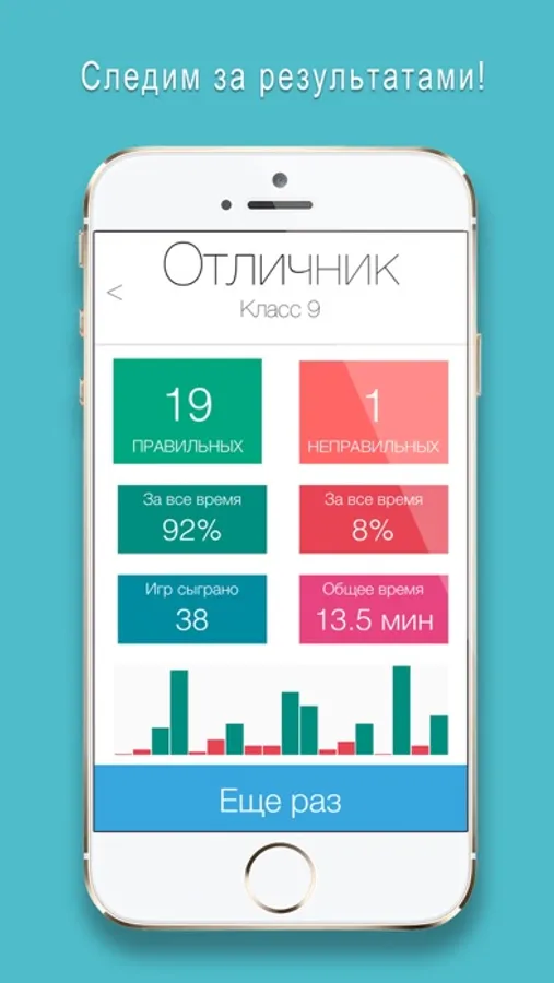 А также статистика, позволяющая визуально оценивать прогресс в изучении словарных слов.
