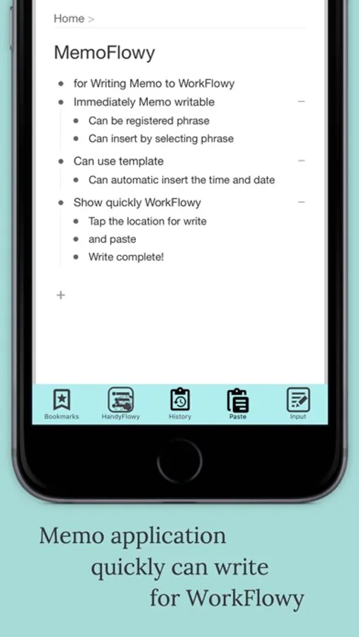 • Text is copied to the pasteboard automatically ,when switching to WorkFlowy.