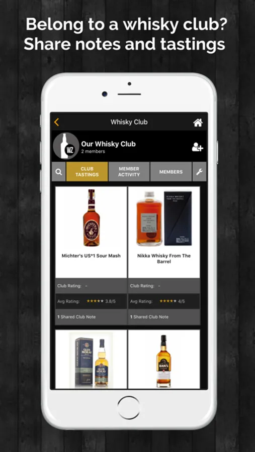 Belong to a whisky club? Use Whizzky to start one on your mobile! Invite your friends and collectively share and rate whiskies, save tasting notes and know that only club members have access.