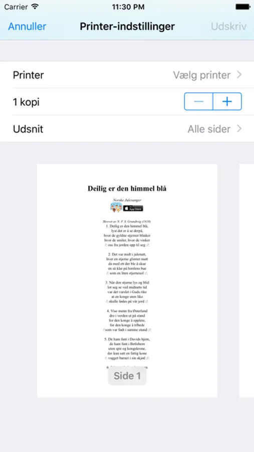 - Skriv ut sangtekstene via Wi-Fi med AirPrint