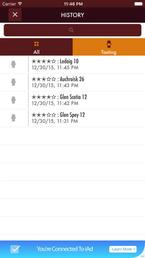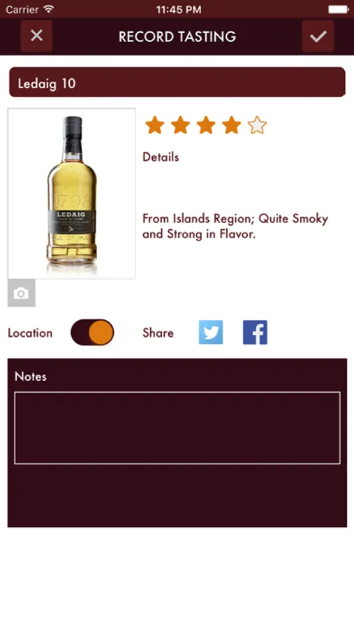 - Lets you record each of the tastings and your impressions of new single malts (or re-introduction to malts you have tried before)