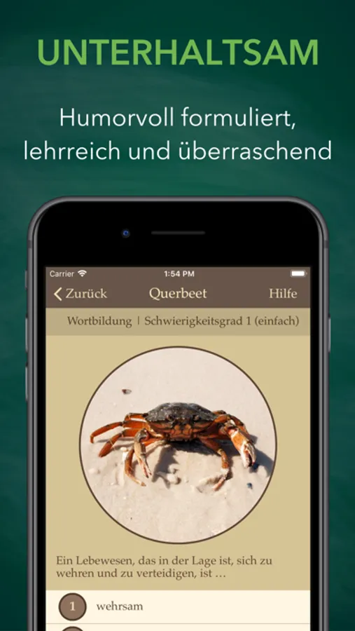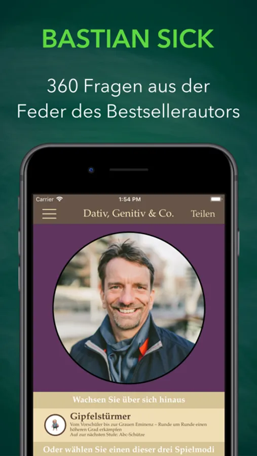 Die ultimative Quiz-App rund um die deutsche Sprache. Kein geringer als Bastian Sick, Autor der „Zwiebelfisch“-Kolumne und der Erfolgsbuchreihe „Der Dativ ist dem Genitiv sein Tod“, hat die Fragen und Lösungen erdacht, die ebenso viel Wissenswertes enthalten wie Überraschendes, Erstaunliches und Lustiges.