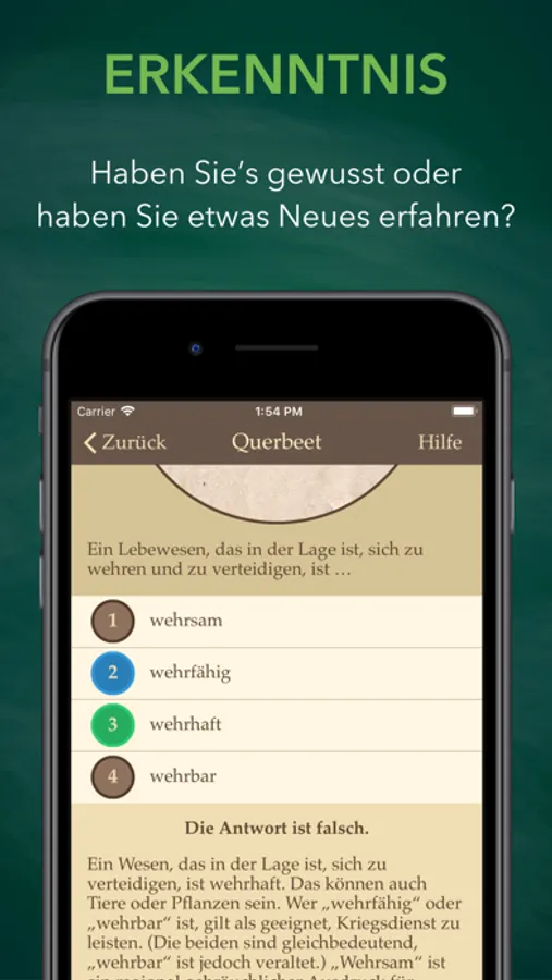 „Ohne Zweifel die beste Quiz-App zum Thema deutsche Sprache.“ („FEZ“)