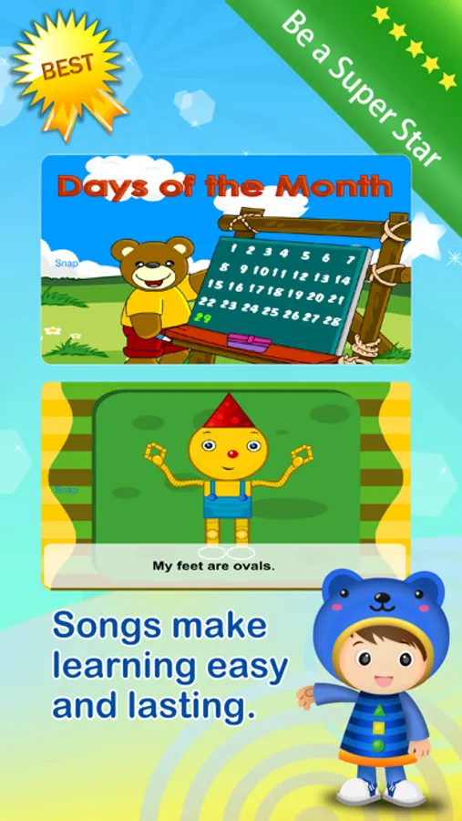 An all in one collection of educational ABC songs, including the famous alphabet song in a vivid interactive and high quality production. This application provides the perfect place to learn basic concepts such and numbers, colors and more.These learning songs are fun, teach important skills for preschool and elementary school kids and they're free.