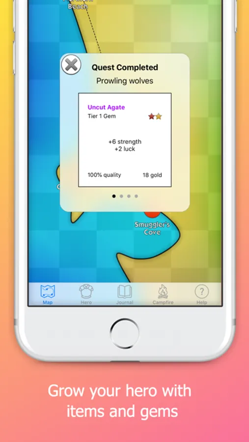 ● Level up and optimize your hero to complete increasingly difficult quests.