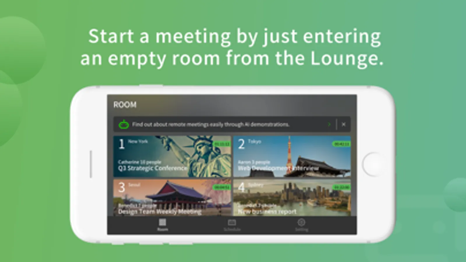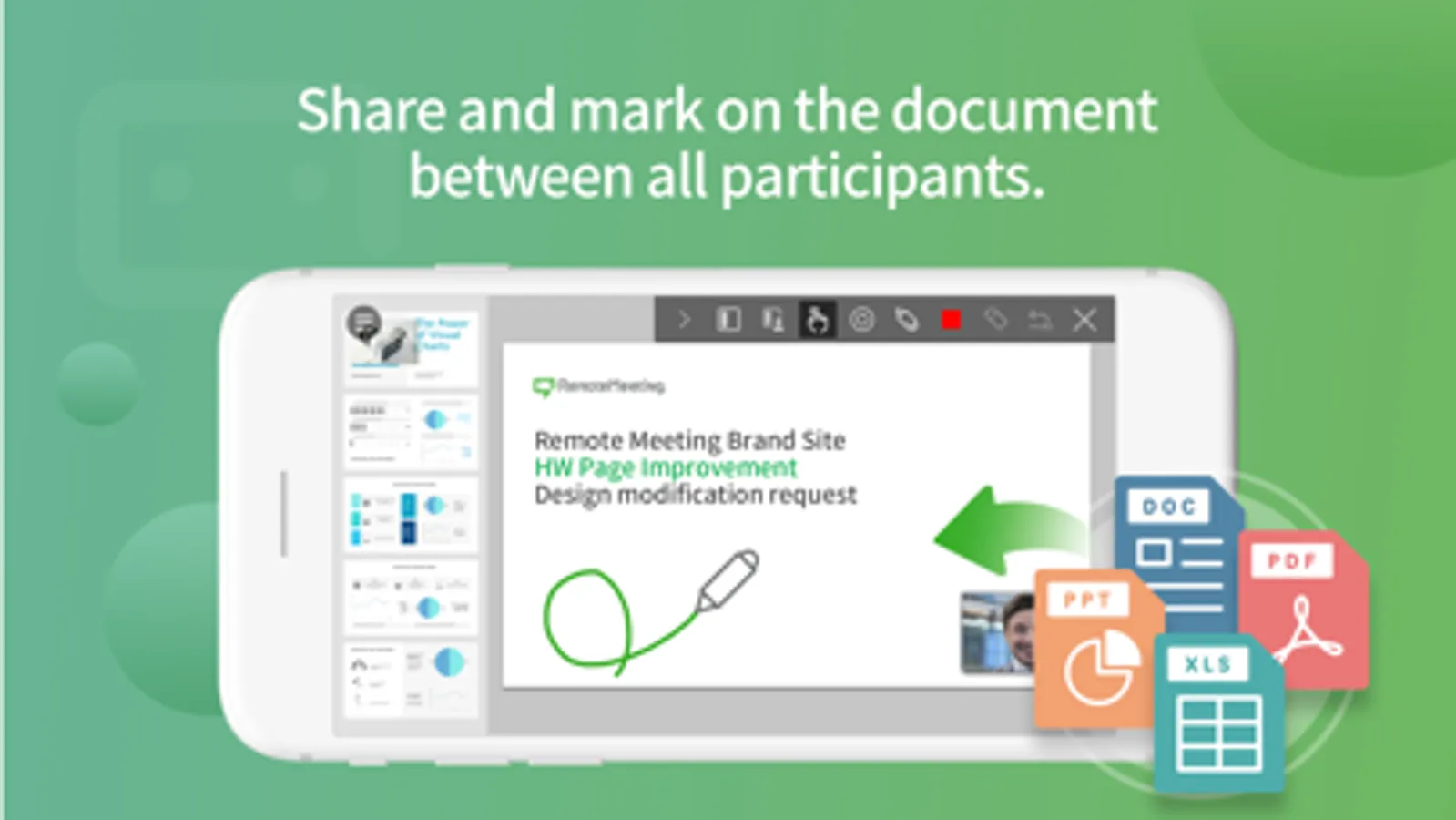 Easily connect with people on PC as well as on mobile through RemoteMeeting (up to 100 participants in a single room!) anytime, anywhere. Conduct Face-to-Face video conferencing in a comfortable environment.