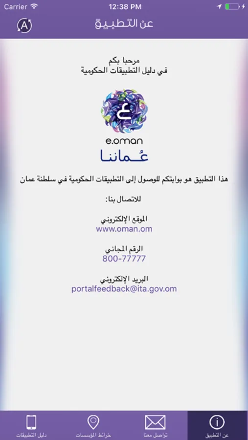 This app provides a full directory where the user can find all the Oman Government apps at one place.