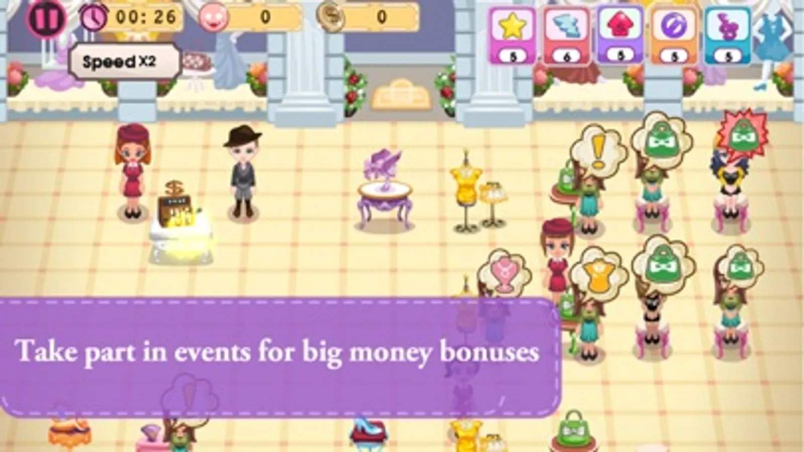 You've taken the leap, and went from ideas to actions, opening your very own boutique. Although you're starting small, you're starting! And it's up to you to progress, and grow. Travel the city, open new boutiques, and serve all of the fashionistas who want the very best in taste and style.