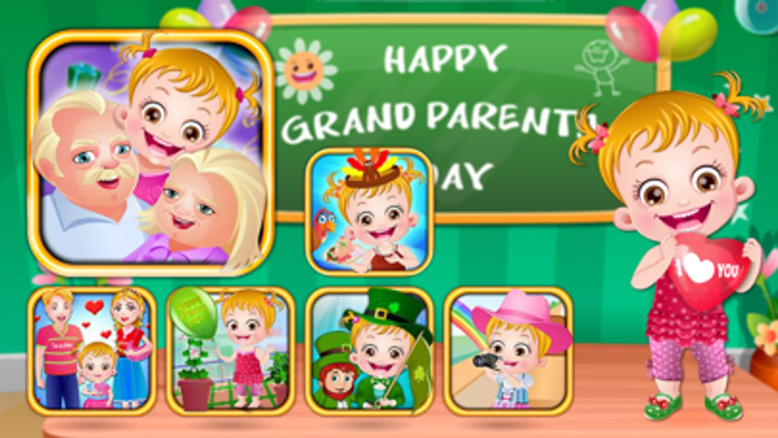 It's time to celebrate Grandparents' Day with Baby Hazel and friends. On this special occasion, help the kids to show how much they love their dearest grandparents.