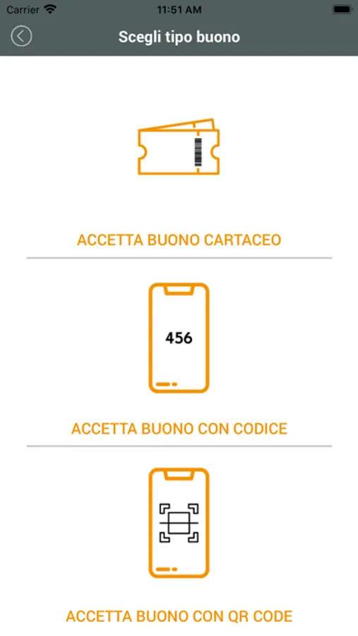 ACCETTA BUONI tramite Codice, QR Code o inquadrando il Barcode di quelli cartacei. L’app risponde in tempo reale verificando la validità del buono e autorizzando la transazione. In MOVIMENTI DEL GIORNO ritrovi tutte le transazioni andate a buon fine.