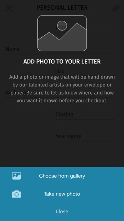 * Send an actual, real life, 100% customizable personal letter with fine art from the convenience of your phone in a couple of minutes.