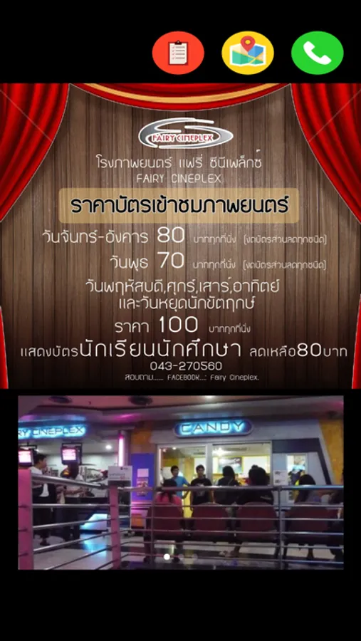 - ปุ่มโทรออกเพื่อจองตั๋วหนัง