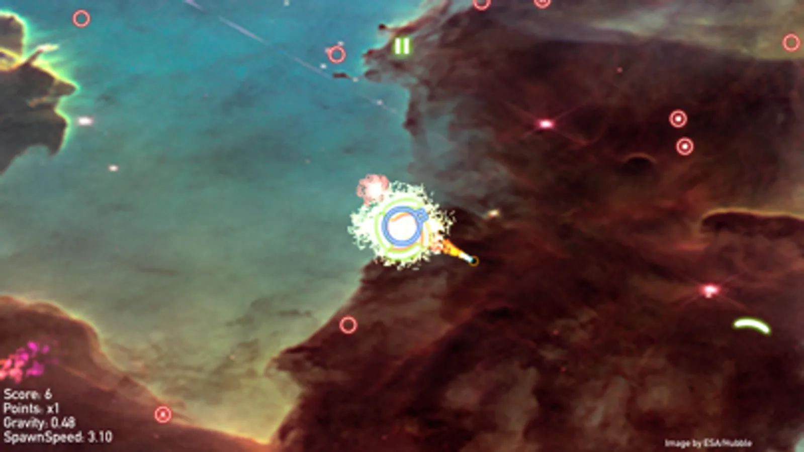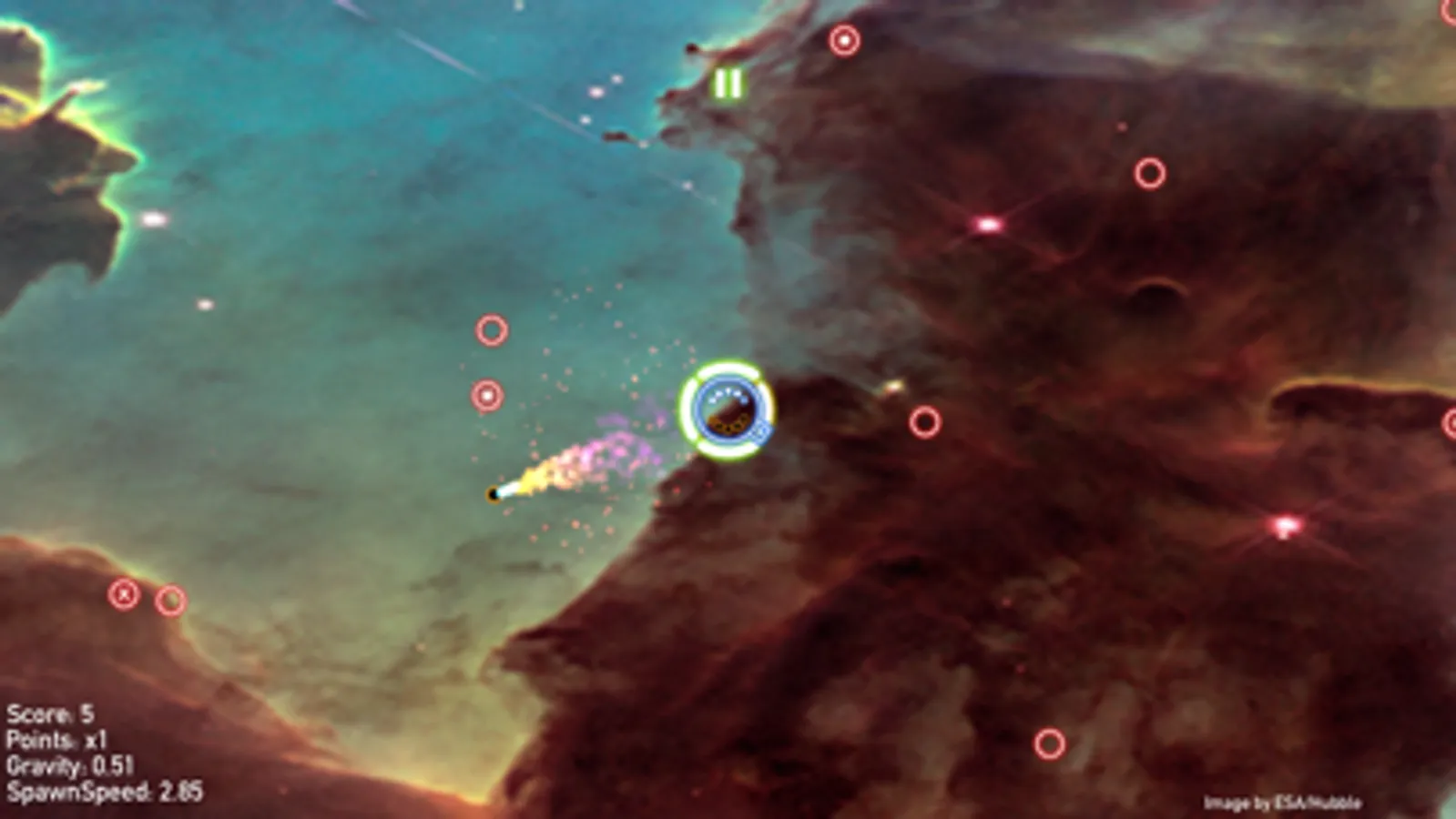 Mission is not simple. Enemies are spawn to your outpost at constantly accelerating speed and gravity from your Space Cannon is against you. Some enemies are carrying a bomb which destroys all your shields when hitting your Space Cannon. Luckily also destroying enemy like that destroys all current enemies. If you are looking for more credits, find x-marked enemies and your points are multiplied until you muff a shoot.