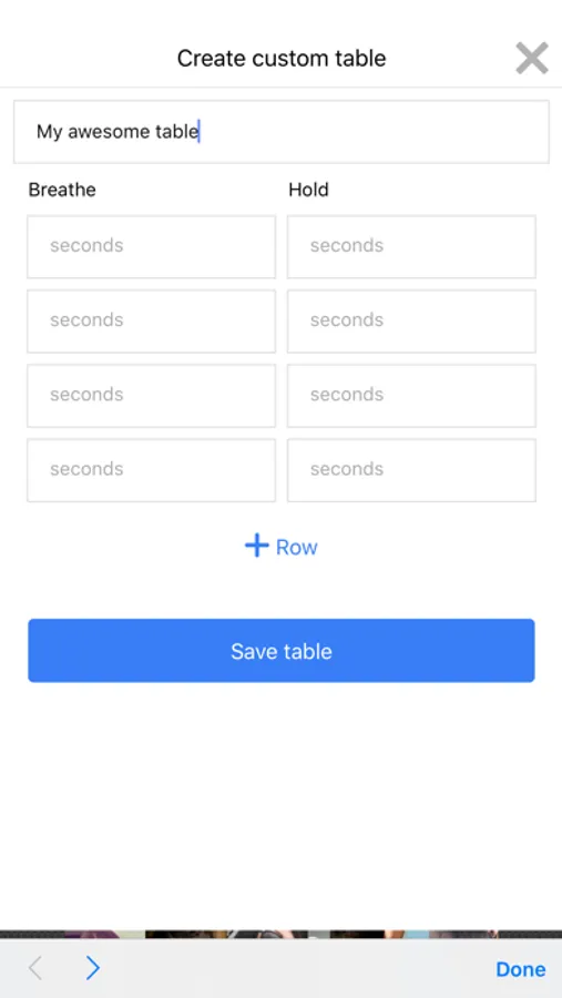 - Create your own custom tables by choosing table size freely and setting all durations individually