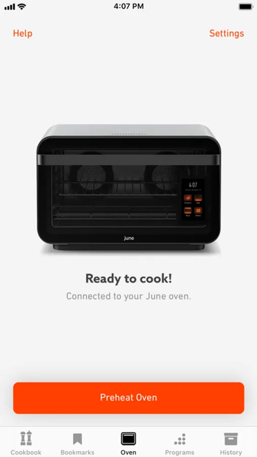 - The app controls your June including starting a preheat, choosing preferences and setting the temperature and time for the recipe.