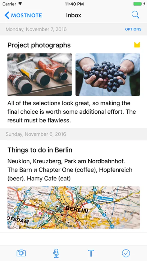 A place to store your text and audio recordings, to-do lists, pictures, links and any other files. Create notes easily and view them in a convenient format, with instant search and a broad variety of ways to organize your content. You can work with any file types.