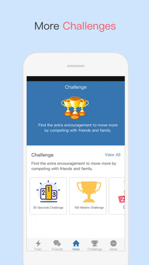 30 seconds challenge. 100 meters challenge. Daily top speed challenge. Daily total distance challenge. Weekly top speed challenge. Weekly total distance challenge.