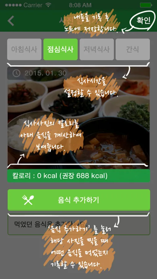 곡류(밥, 빵, 국수 등), 어육류(고기, 생선 등), 채소류 및 우유 및 과일을 골고루 구성하여 식사합니다. ‘먹은 식단 (먹을 식단)’ 메뉴를 이용하면 쉽게 차릴 수 있습니다.