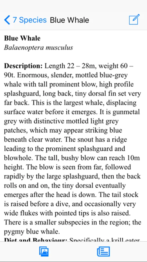 ● A personal list that stores your sightings saved to the device* and can be exported using email.