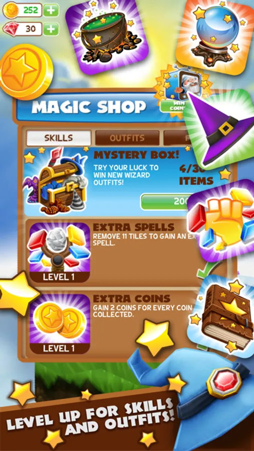 Collect gold stars to participate in mini game events and spend your coins on upgrades, pets, staffs, and outfits to customize Merlin’s look. Complete quests to earn bonus rewards, and summon pets to help you out of tricky situations as you journey from an Apprentice to a fully-fledged Puzzle Wizard.