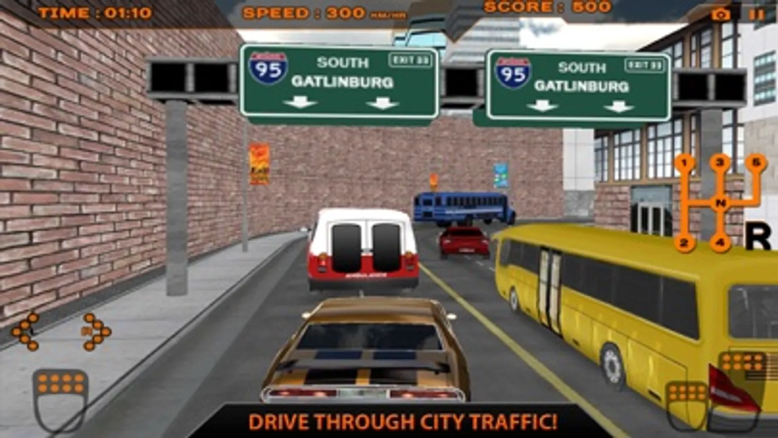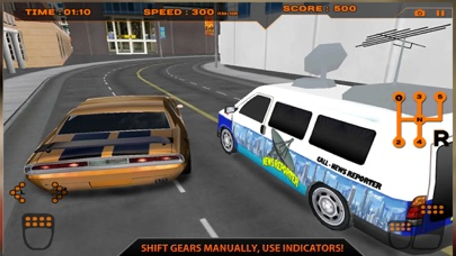 On screen indicators , gas and brake pedal for real life driving experience.