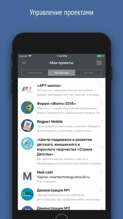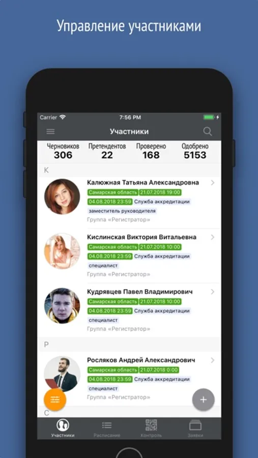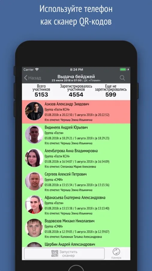 Приложение сделает работу с участниками максимально мобильной и удобной! Использование приложения, и системы в целом, позволяет значительно снизить затраты организаторов на оборудование и перевести работу с участниками мероприятий на новый уровень.