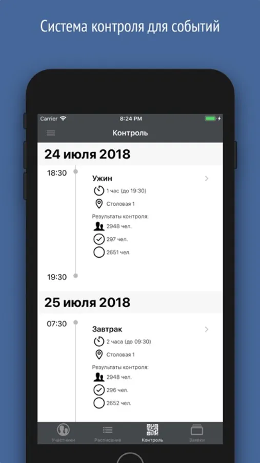 Для организации контроля на месте больше не требуется никакое дополнительное оборудование, только мобильный телефон или планшет с выходом в Интернет. Система контроля может использоваться, как для контроля доступа определенных категорий участников в закрытые зоны мероприятия, так и для отметок о регистрации в определенной точке, выдаче подарочной продукции и так далее. На основе собранных данных контроля могут быть сформированы подробные отчеты.