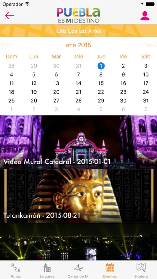 - Eventos Poblanos, divididos en tipos de eventos con información útil como fechas, horarios, fotos y videos.