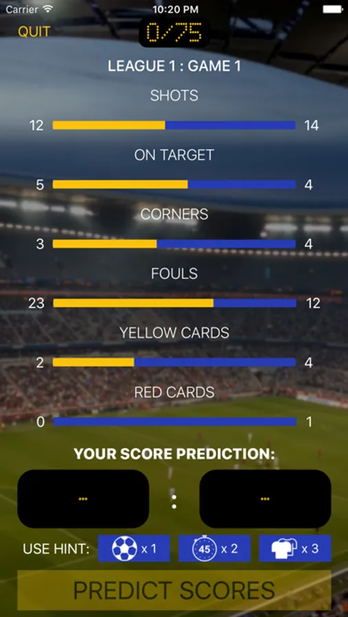 Do you top your fantasy league tables? Do you know everything there is to know about Football? Limited stats are provided, such as shots on goal & corners for a game that has already been completed. Using this information you must predict the final score and are awarded points based on how correct they are.
