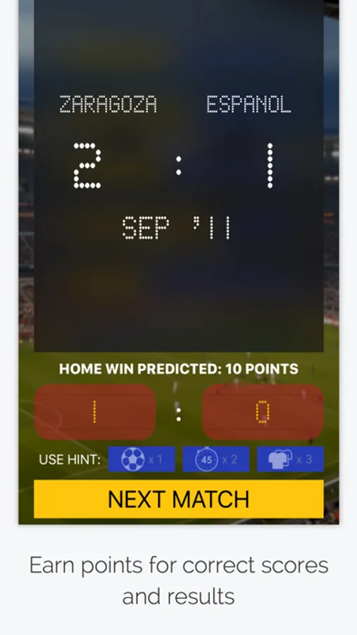 A hint system is implemented to give you a chance to obtain extra information on the game in order to influence your decision if you’re just not sure. There are 3 types of hint available: Reveal number of goals, Reveal the half time position, and reveal the team’s names. These pieces of information give you help, but don’t necessarily give you the final result, so use them carefully.