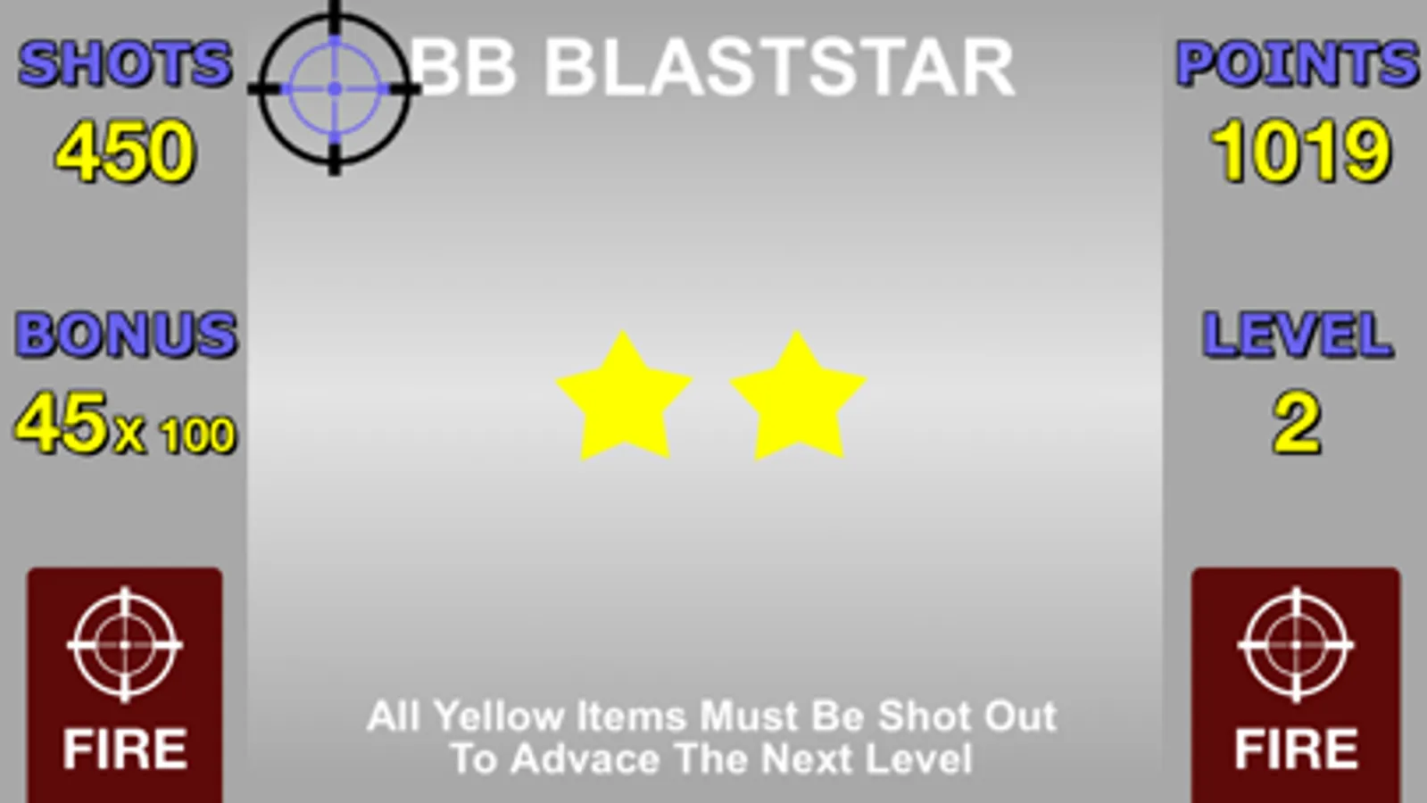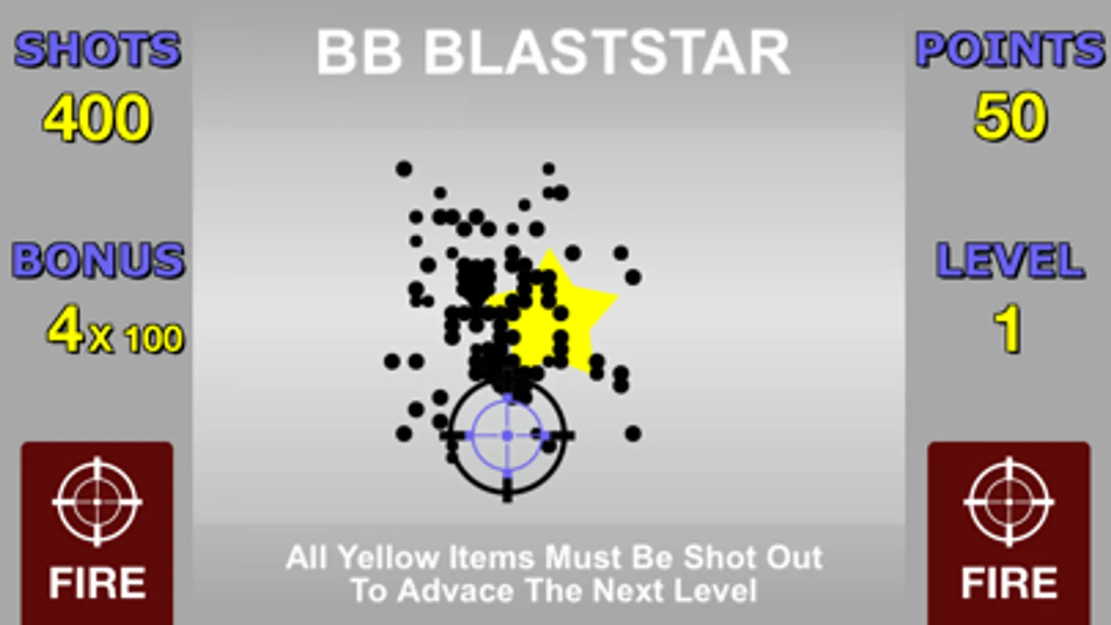 Try you luck at the classic carnival shooting gallery for you iOS device. Shoot out all of the yellow objects on each level to advance. It's simple and fun. You can upload your scores to our online portal and see rankings against others. Enjoy - this is our take on the classic star BB gun shooter game. Get to Level 8 and consider yourself a master of these BB wars.