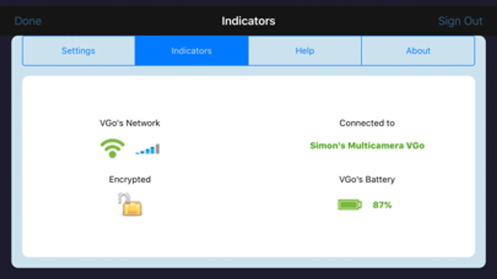 VGo App for iPhone enables VGo Robotic Telepresence users to use an iPhone to visit using a VGo. With VGo you can move around (drive) in a distant location and interact the people there. VGos are in hospitals, schools, businesses and the home. VGo is simple, secure and affordable for all type of organizations. Your organization must provide you with a username and password and provide access to approved VGos.