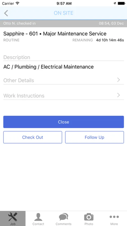 The application allows suppliers to view their list of job appointments for today, tomorrow and jobs overdue, check in to jobs and close jobs to completion. While on the job, the application allows field technicians to
