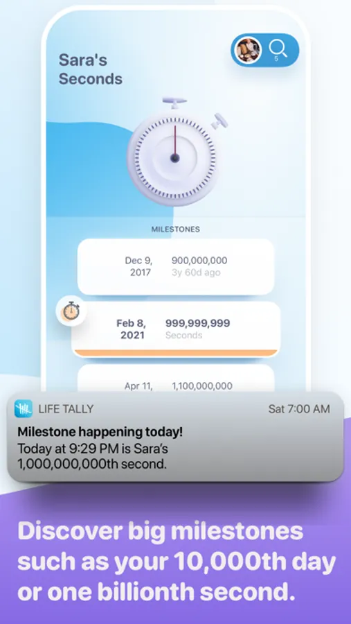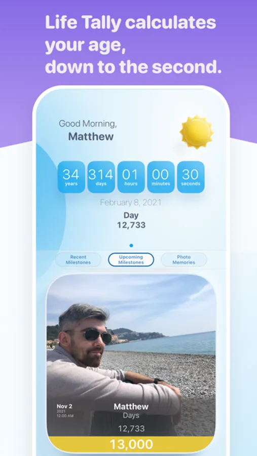 Everyone knows when their birthday is, but do you know when your 10,000th day is? It happens in your 27th year. What about your one billionth second? That happens in your 31st year. Discover these and many more interesting life milestones with Life Tally.