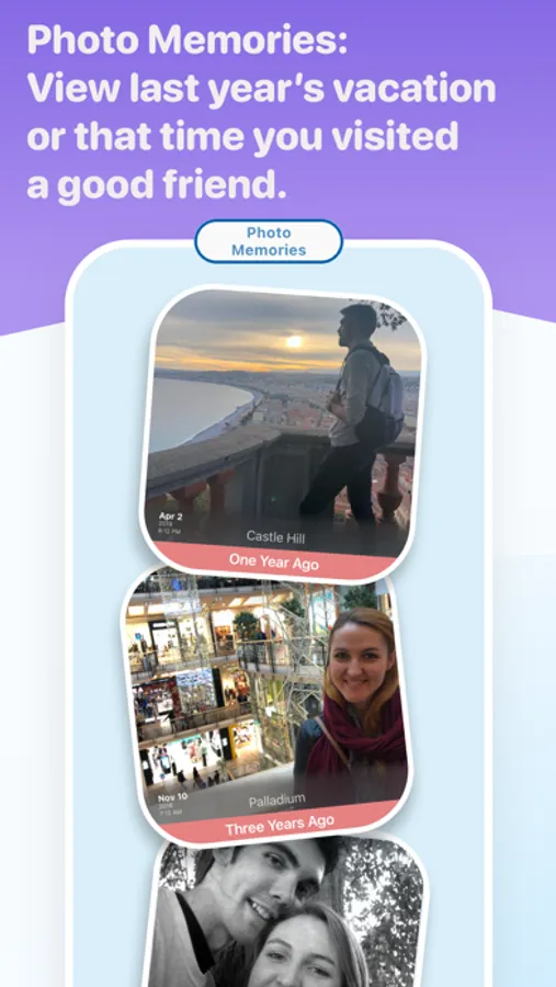 Photo Memories. Check each day to see photos from a year or two (or five or ten) ago.